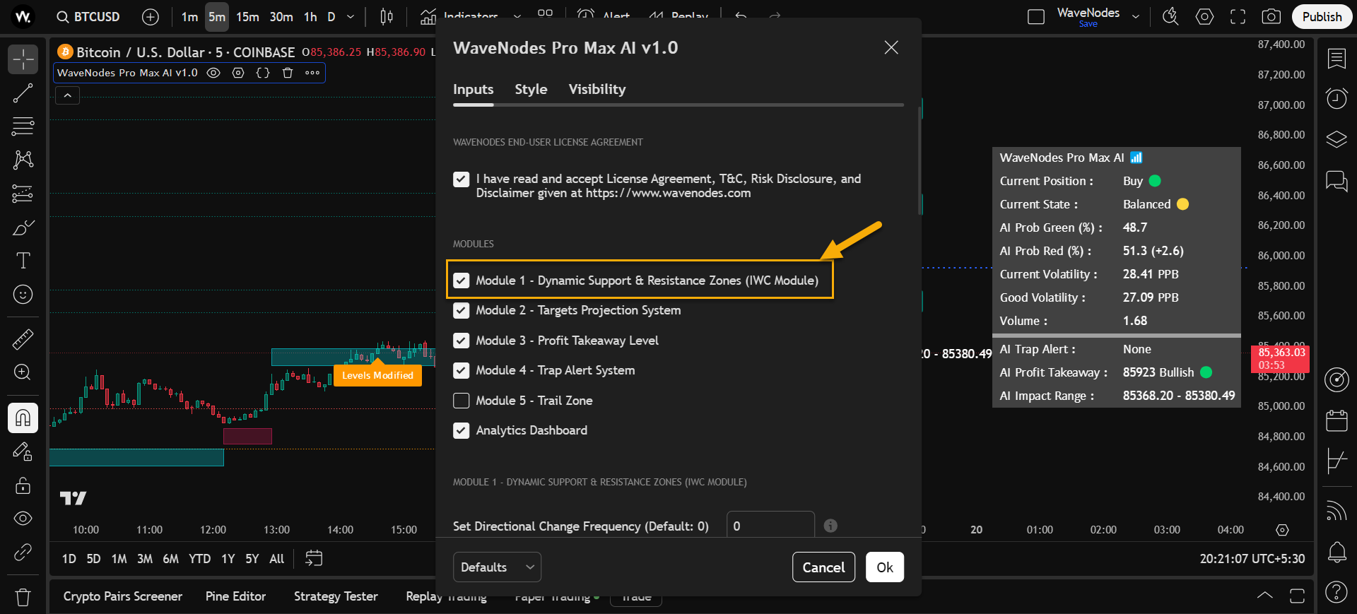 - 5Select the WaveNodes modules you wish to apply to the chart