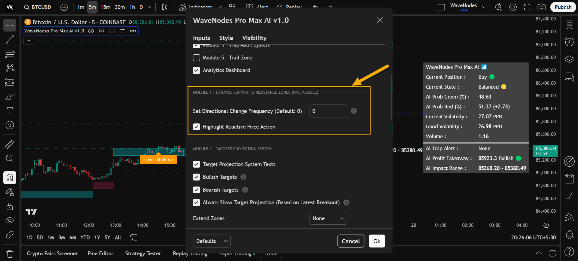 Optimize WaveNodes Professional for your trading style and market conditions.